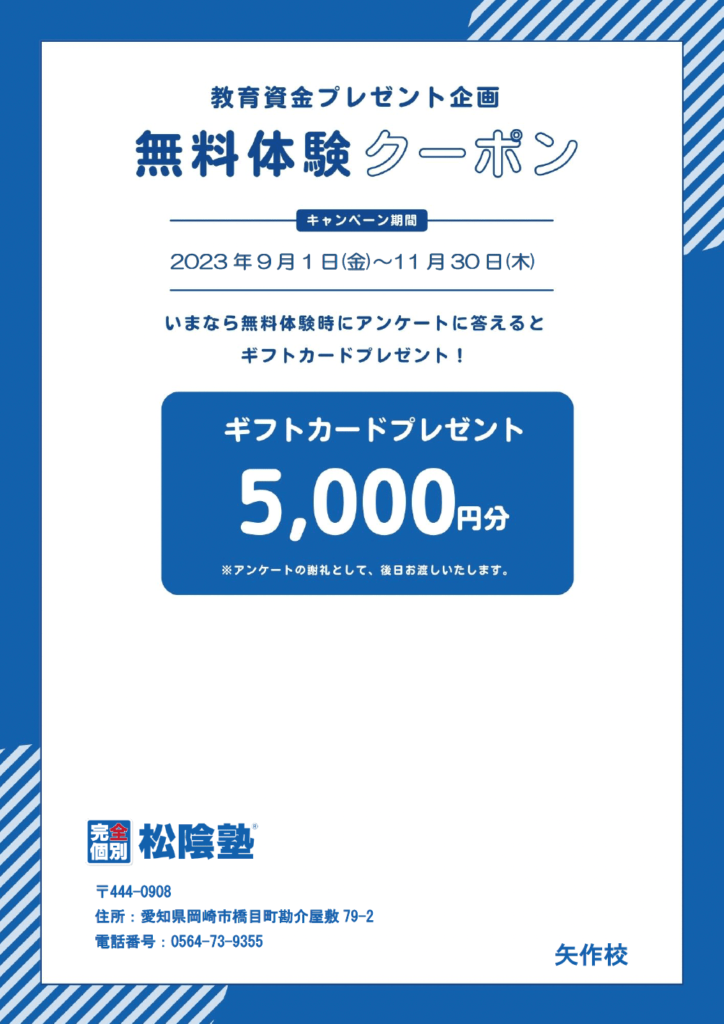 岡崎矢作校限定キャンペーン